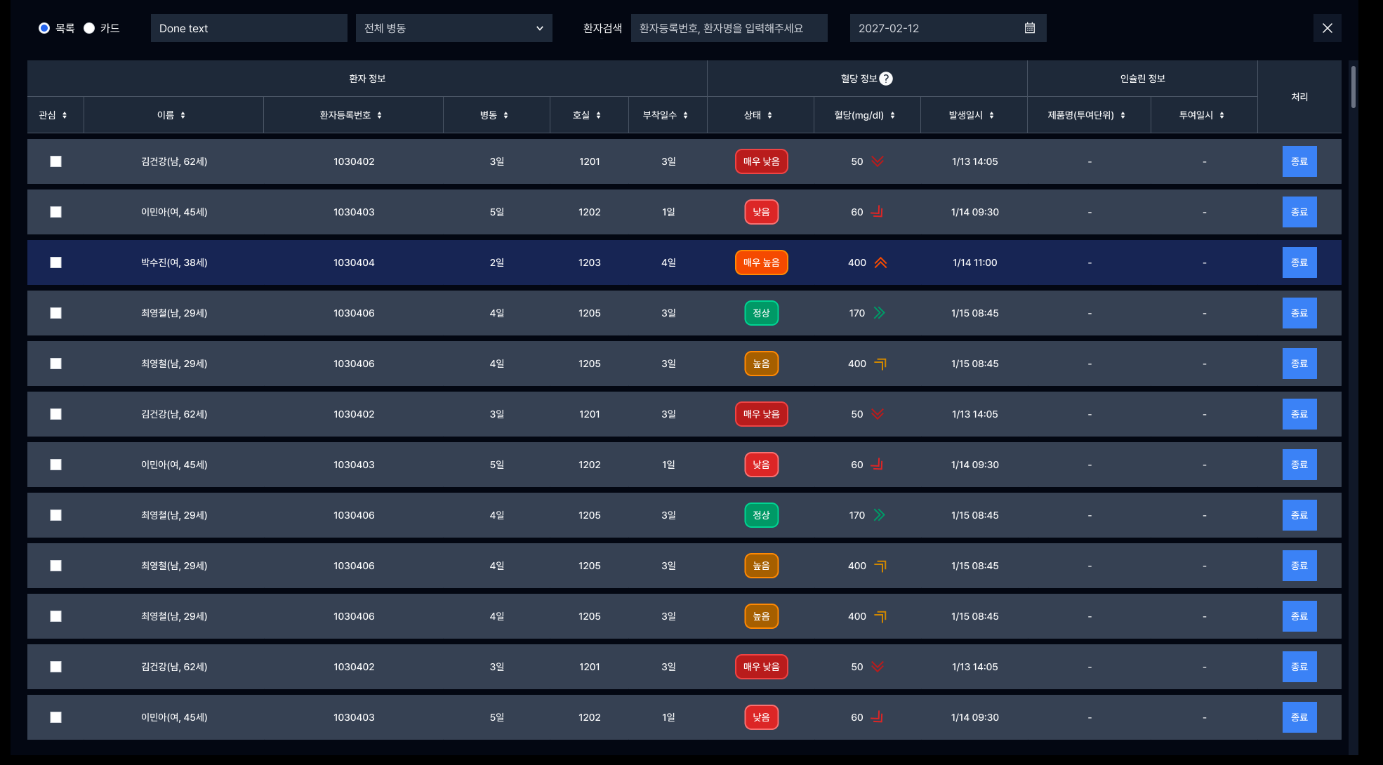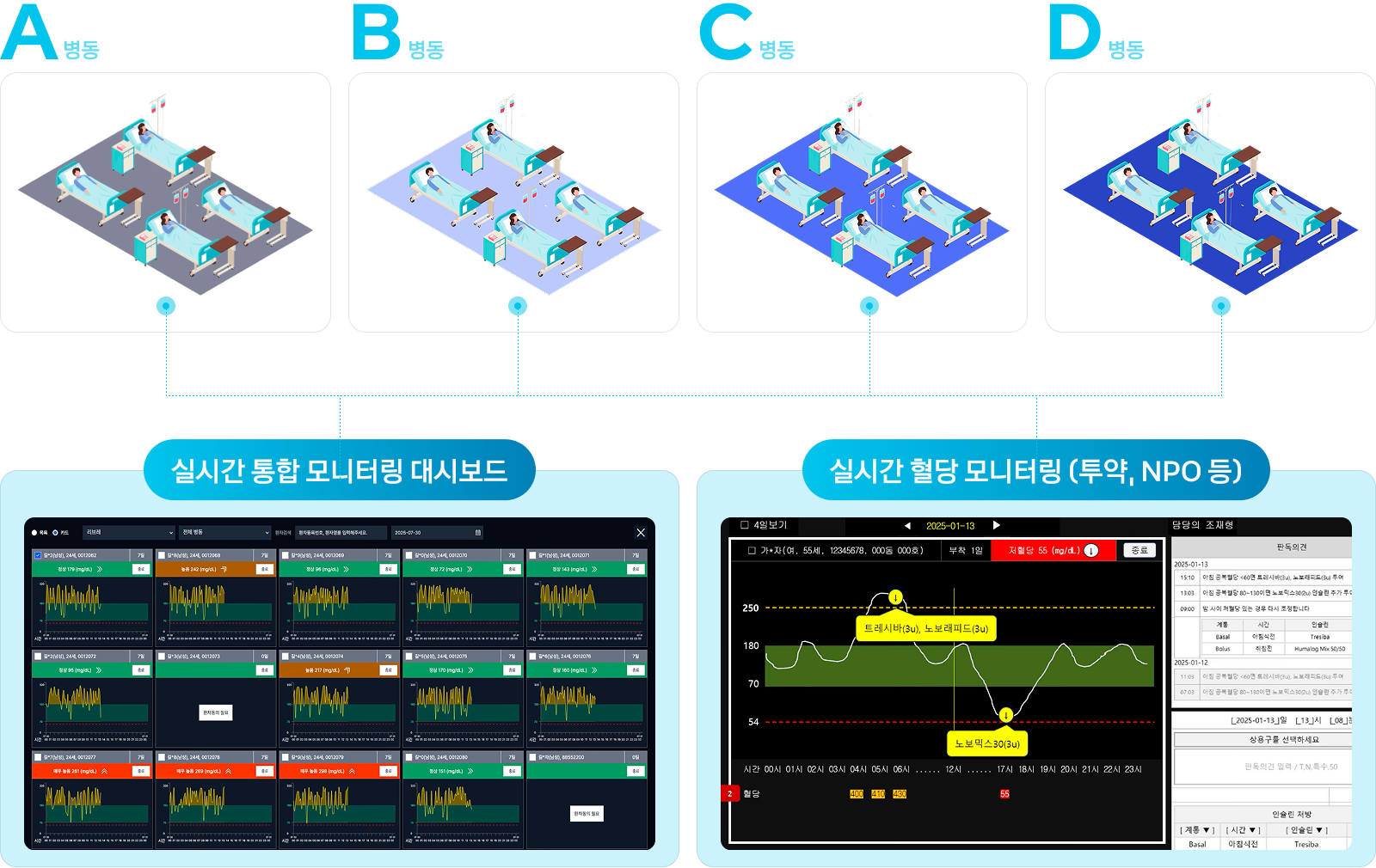 병동/병실 단위 실시간 모니터링부터 인슐린 투약경과까지, 병원 환경에 최적화된 올인원 솔루션