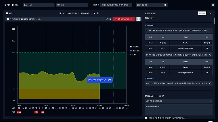 입원 환자 중심의 실시간 혈당 관리 솔루션으로의료진의 효율성과 환자의 안전을 동시에 강화합니다.