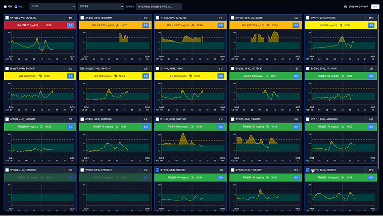 – 랩커넥트에 등록된 모든 CGM 환자 실시간 혈당 데이터 한 화면에서 통합 관리 – 병동 · 병실 단위 모니터링 가능