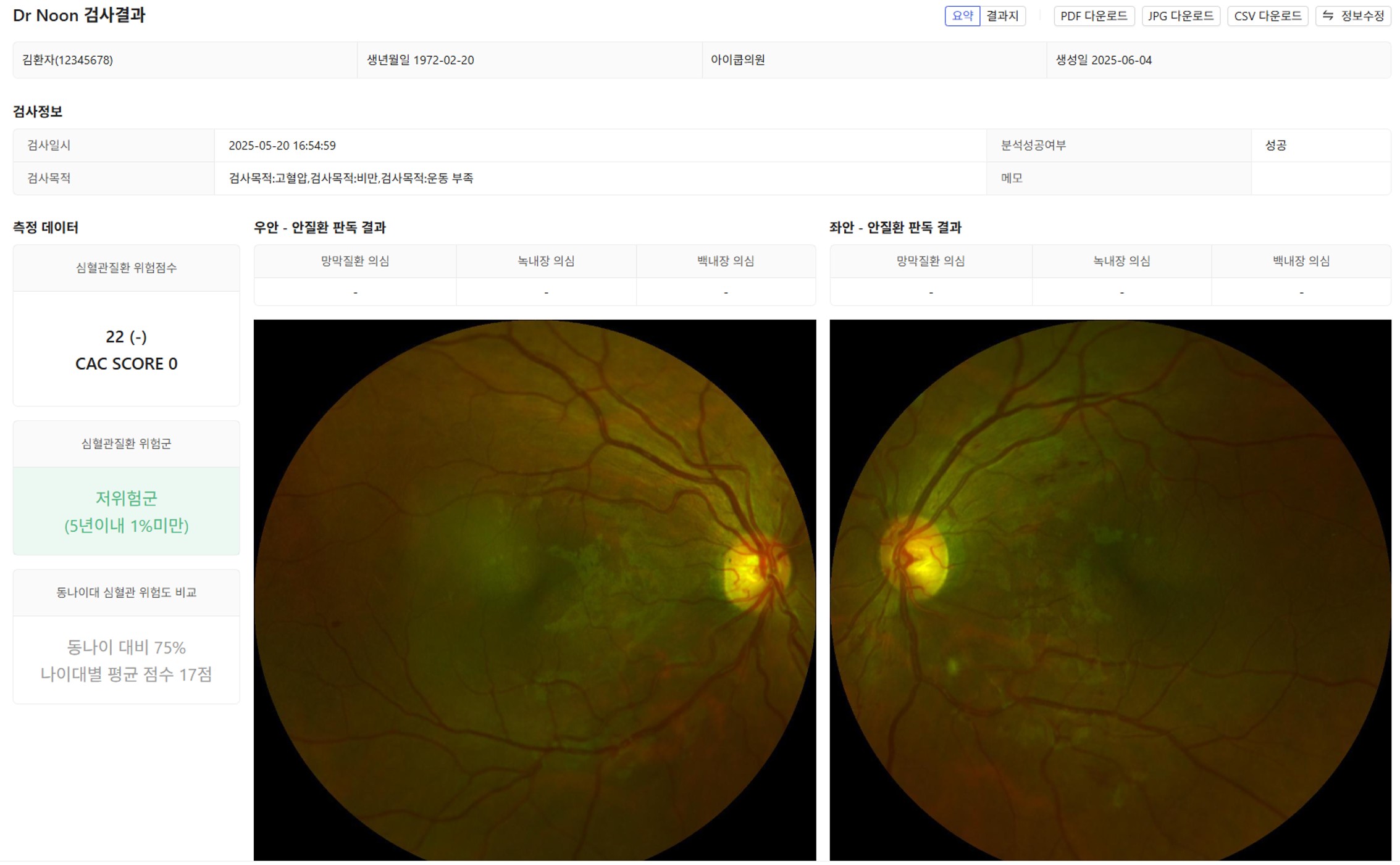 망막 AI 기반 심혈관 질환 위험 평가 인공지능 솔루션
